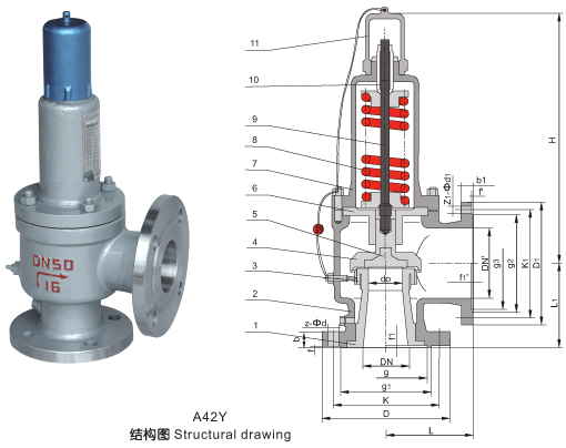 五、彈簧全啟封閉式安全閥(A42Y)剖解(jie)圖:
