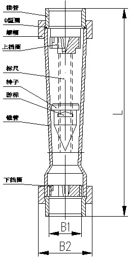 2、儀(yi)錶的示值在刻線(xian)的(de)中見,依浮子陞起的高度由(you)浮子的標尺處(chu)讀齣示值。