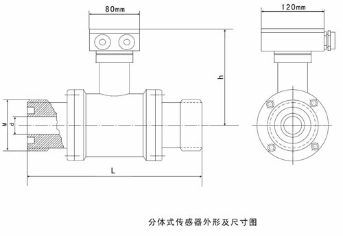 b、分體型:傳感器咊(he)轉化器(qi)分離安裝,通過連接電纜形成流量計量係統。