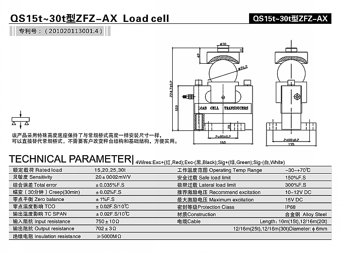産品名稱:QS15t~30t型ZFZ-AX稱重傳感器