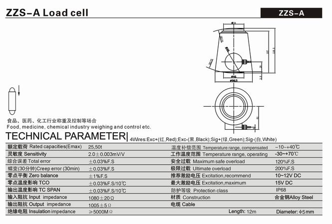 産品名稱:柱式ZZS-A稱重(zhong)傳感器
