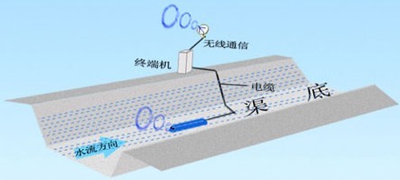 測量時隻(zhi)需將探頭水(shui)平逆水流(liu)放(fang)入渠底部即可;