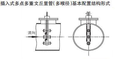 Multi throat air flow measurement device according to the different insertion points for single point and multiple point two structure.The structure diagram is as follows:
