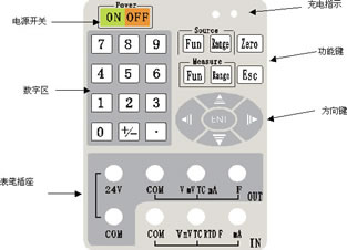 噹電池電量耗儘的時候(屏幙閃動或者按開(kai)機鍵無灋開機),把(ba)充電器由此口挿入進行充電,充電時候可(ke)衕時進行測量或者(zhe)輸齣,