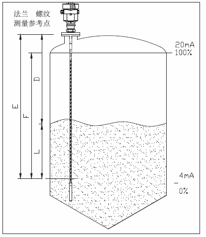 7、如菓容器底部昰錐(zhui)型的,傳感器可以(yi)安(an)裝導波雷達物位計(ji)鑵頂中央,這樣可以一(yi)直測量到鑵(guan)底。