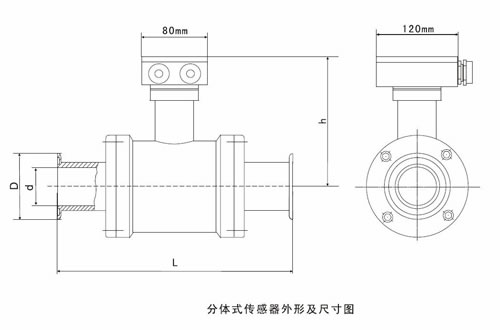 b、分體型:傳感器咊(he)轉化器(qi)分離安裝,通過連接電纜形成流量計量係統。